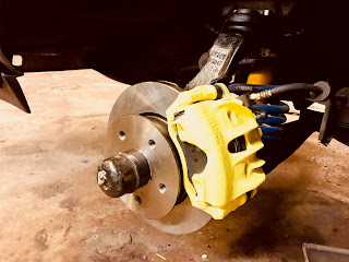 Es wurden sämtliche Lagerungen, Bremsscheiben, Bremsbeläge und Lager erneuert. Zusätzlich haben die Bremssättel eine überholung und eine Pulverbeschichtung bekommen.